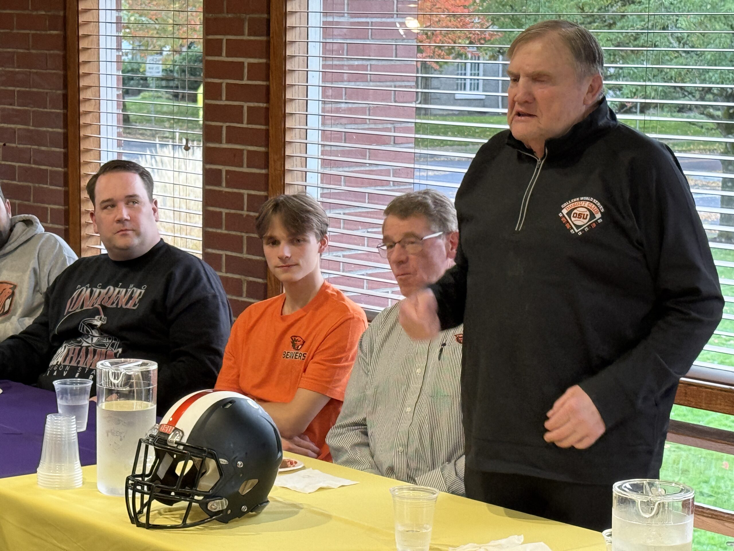 One of Oregon Alpha’s great traditions is the annual “Dinning on Duck” dinner that happens each Monday night dinner the week of the Civil War football game between the Beavers and the University of Oregon Ducks. Over the years, many Beaver greats and members of SAE have played in this game. In 2000, Scott Spiegelberg ’75 invited legendary OSU Coach Dee Andros to come to dinner and talk about what the Civil War meant to him. That evening started what has become an 18 year tradition! Thank you to Scott Spiegelberg for his leadership and commitment to creating a very special night each year at Oregon Alpha. Here is a list of our guest speakers who have shared their memories of participating in Civil Wars and their time at Oregon Alpha.